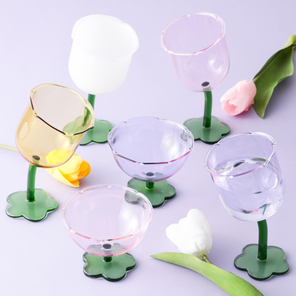 구불구불한 튤립의 형태가 귀여운 와인잔과