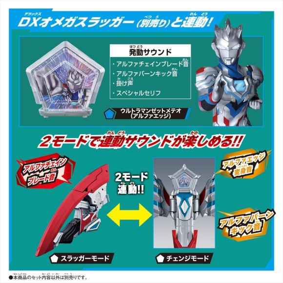 슬러거 모드에서는 알파 체인 블레이드의 공격음이, 체인지 모드에서는 울트라맨 제트 알파 엣지의 변신음에 더해, 알파 엣지의 소리, 알파 번 킥음, 컬러 타이머 소리가 발동합니다.