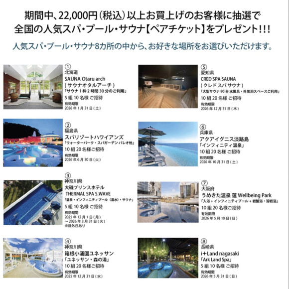 추첨으로 전국의 인기의 스파・풀・사우나를 선물 하겠습니다!♡